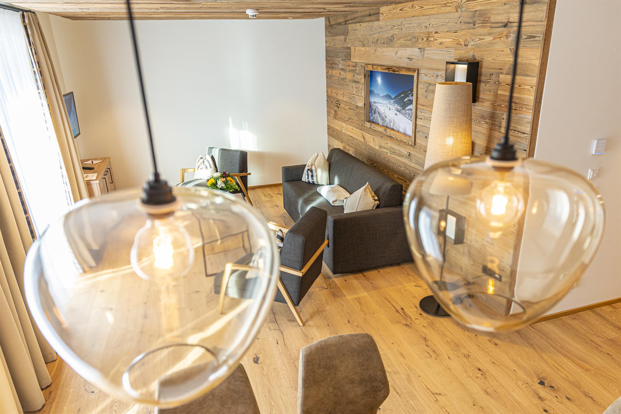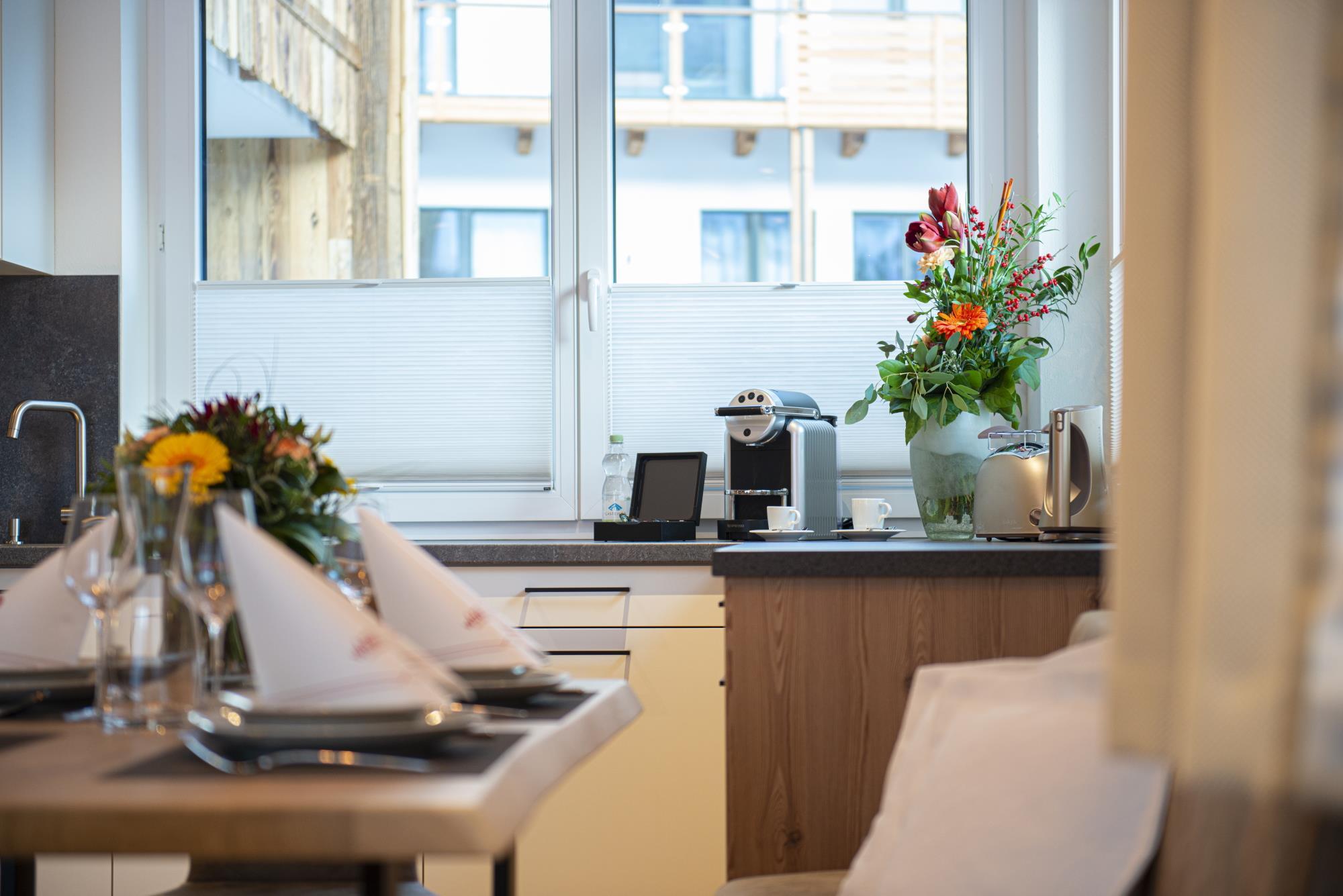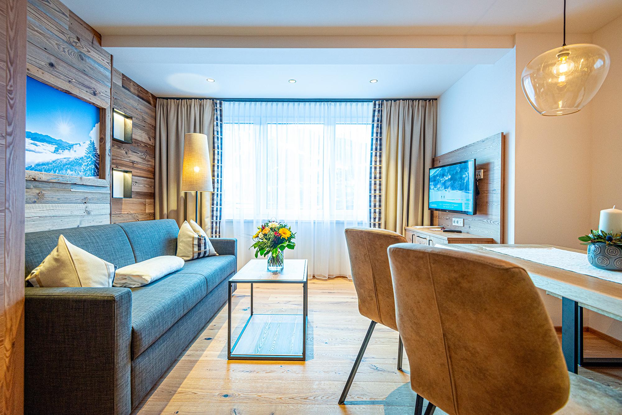 In the newly built chalets you live in the best location with the highest level of comfort. All apartments are between 40 m2 and 80 m2 in size and are named after the local mountains. The name says it all, because the magnificent view is guaranteed to make mountain lovers' hearts beat faster. The complete kitchen equipment, fiber optic internet and underfloor heating are just as standard in all units as high-quality local materials. All apartments are equipped with balconies, from which you can enjoy the wonderful panoramic view of the Gastein mountains without restrictions. On request, fresh pastries can be brought to your door in the morning. A special highlight is the in-house "Genießerbar", a cozy meeting place for breakfast and lunch in a modern, alpine ambience. Here you can start the day well strengthened every morning à la carte (for a surcharge).