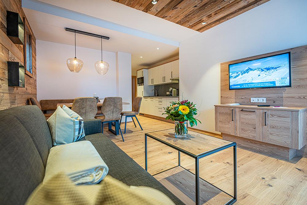 In den neu gebauten Gipfelblick Chalets wohnen Sie in bester Lage mit höchstem Komfort.Alle Appartements sind zwischen 40 m2 und 80 m2 groß und sind nach denheimischen Bergen benannt. Hier ist der Name Programm, denn dieherrliche Aussicht lässt Bergliebhaber-Herzen garantiert höher schlagen. Die komplette Kücheneinrichtung, Glasfaser Internet undFußbodenheizung sind in allen Einheiten ebenso Standard wie hochwertigeheimische Materialien. Alle Appartements sind mit Balkonen ausgestattet, von denen aus Sie das wunderbare Panoramader Gasteiner Bergwelt uneingeschränkt genießen können. Auf Wunsch wird Ihnenmorgens frisches Gebäck direkt an die Tür gebracht.