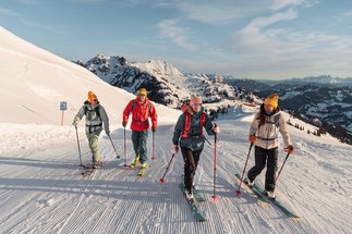 You will be accompanied by a state-certified ski guide. After a brief introduction to the safety equipment included in the price, the ascent of around 500 metres in altitude starts over easy terrain. The descent then takes place on the groomed piste.