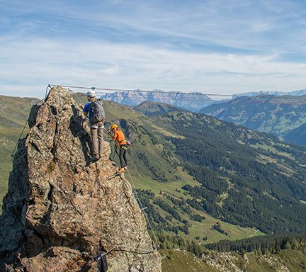 The motor skills trail leads playfully through a series of stations designed to boost concentration, coordination and agility. Surrounded by alpine scenery, each exercise becomes a memorable experience. A standout feature is the rope bridge, part of the practice via ferrata. What awaits you there? A single wire rope beneath your feet, crisp mountain air in your nose, and – at the end – the proud sense of having mastered this small test of courage.