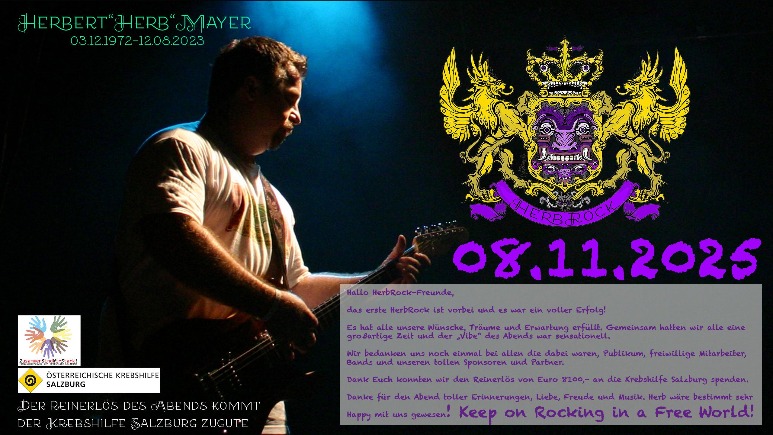 Organisiert vom Verein HerbRock der Geschwister Mayer, findet dieses besondere Konzert „In Loving Memory“ ihres Bruders Herbert „Herb“ Mayer statt – Musiker, Freund und kreativer Teil der Salzburger Musikszene seit den 90ern.