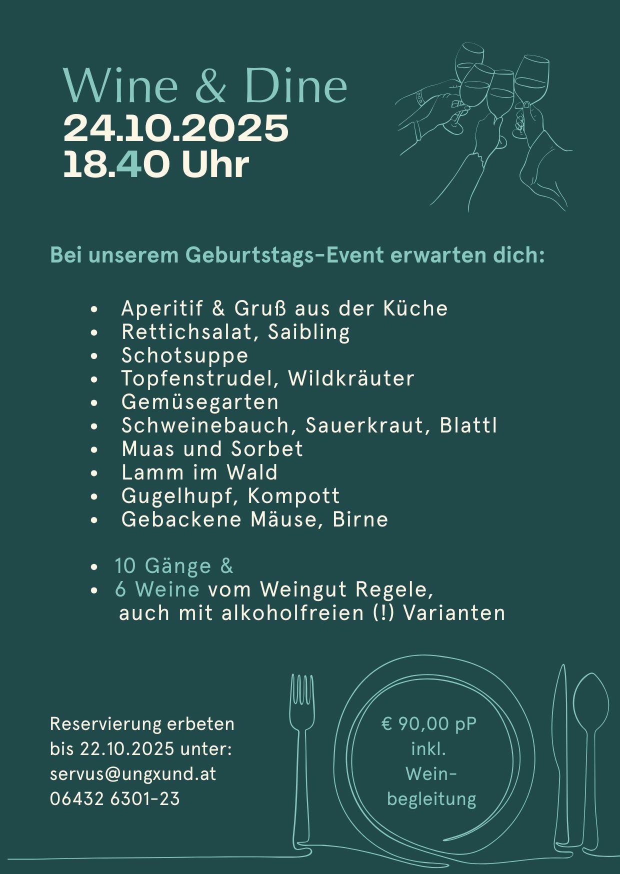 Wir bitten um Reservierung bis 22.10.2025 unter servus@ungxund.at oder 06432 6301 23