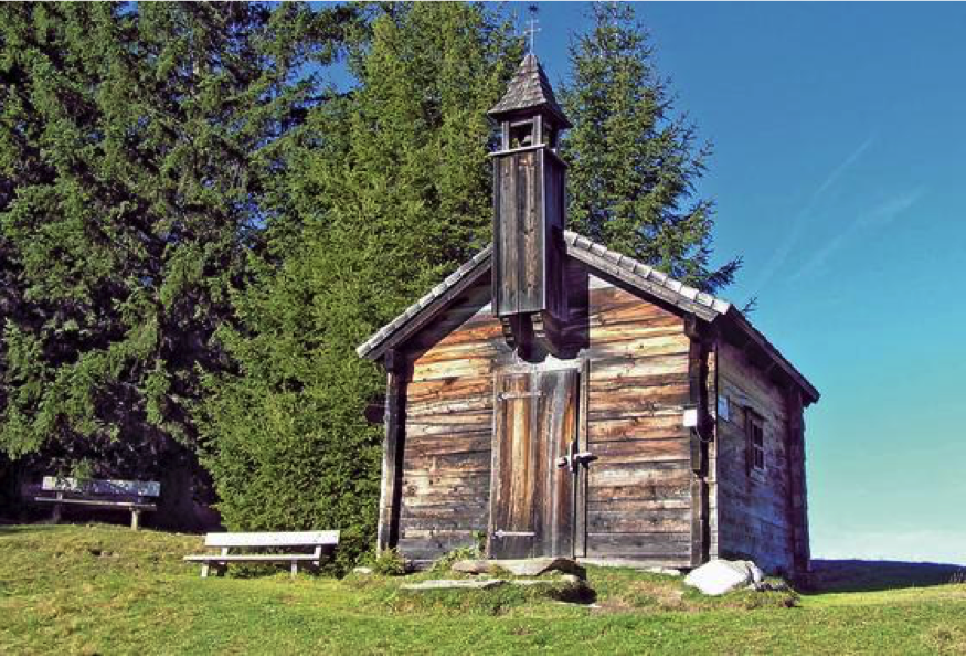 Nach der Abzweigung zur Amoseralm hält man sich rechts und passiert die Huberalm. Eine letzte Kehre führt zum höchsten Punkt der Tour – der „Drei Waller Kapelle“. Ein Stopp lohnt sich, um die besondere Atmosphäre dieses Kraftplatzes zu genießen. Anschließend geht es bergab zur Kögerlalm.