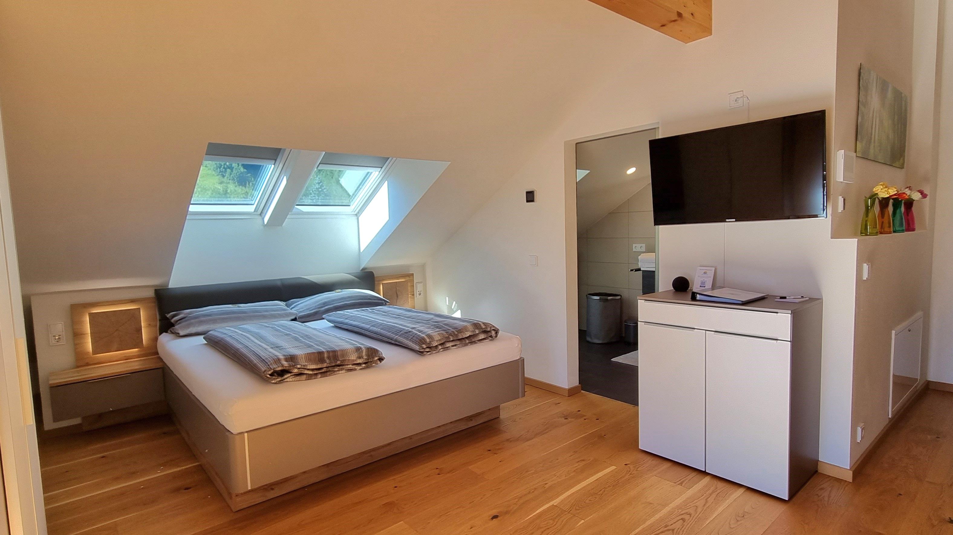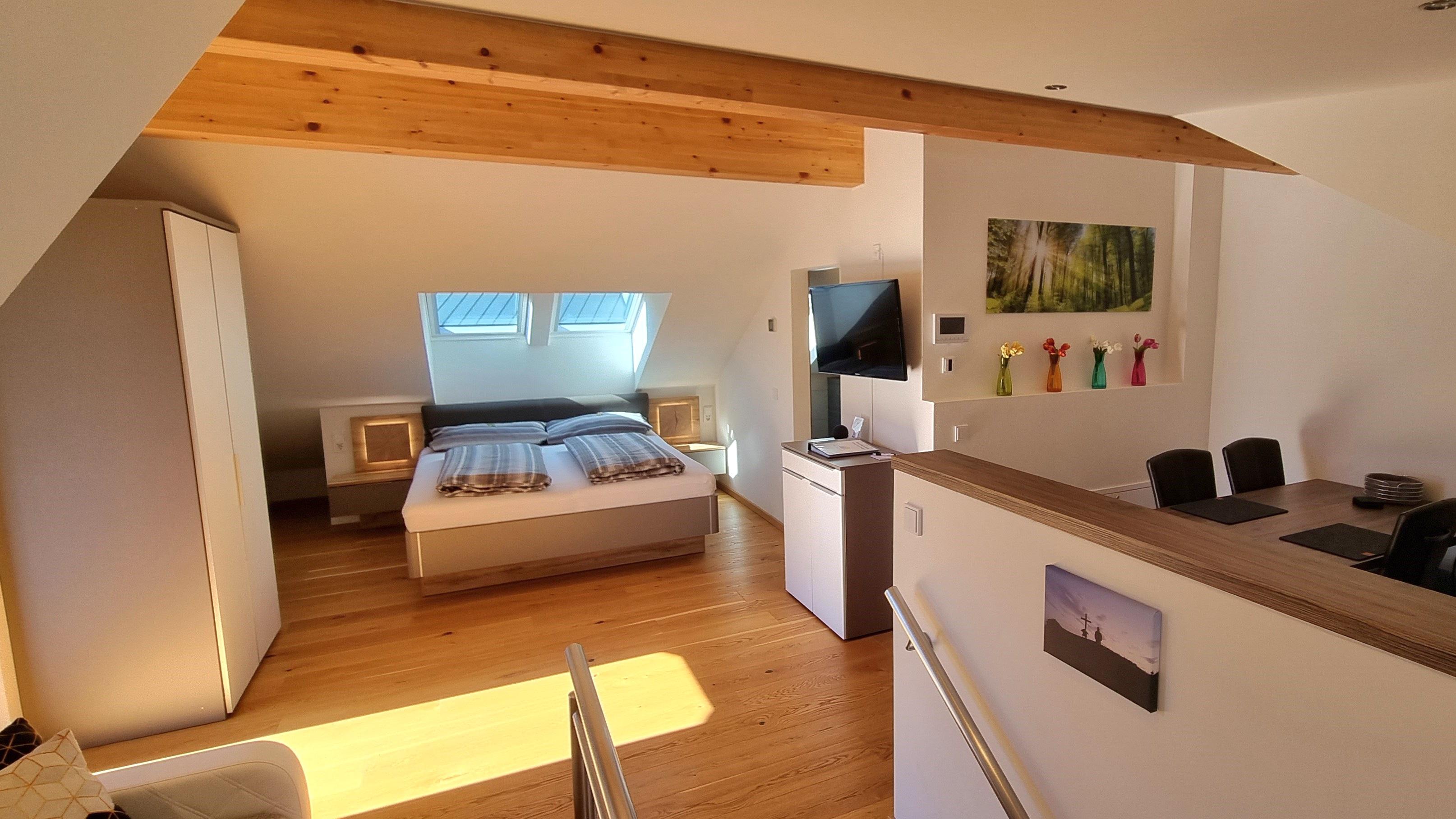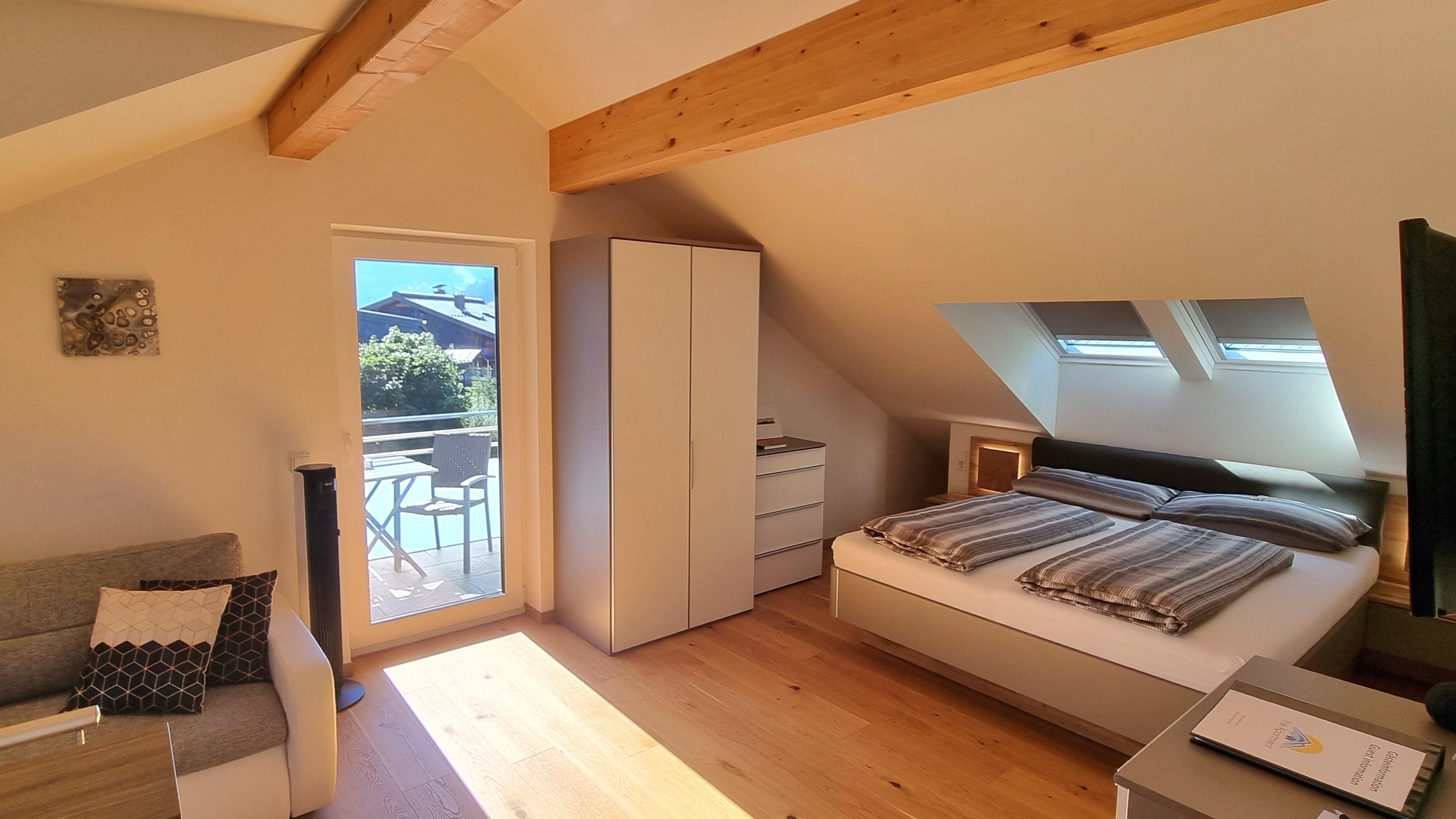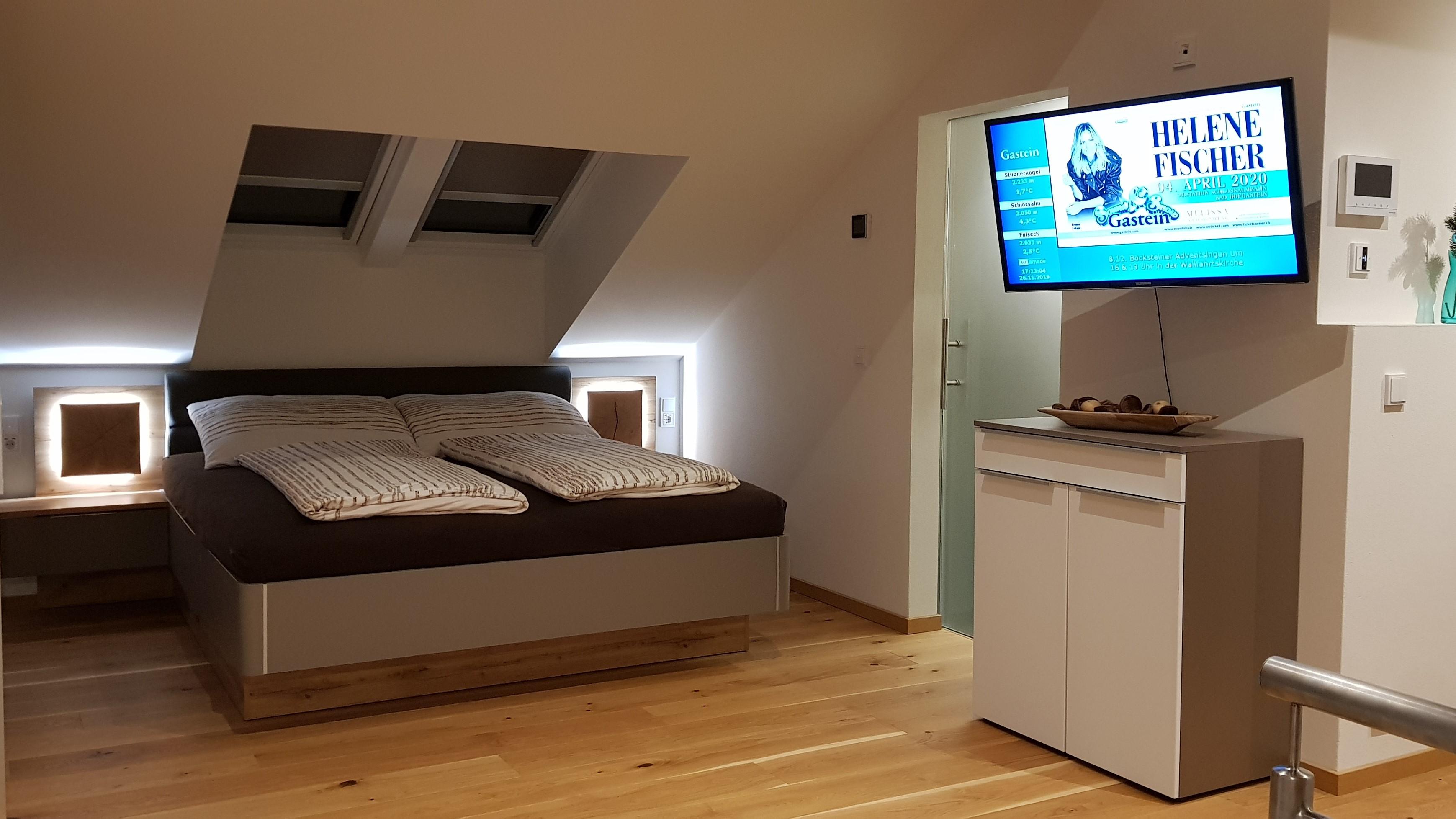 "The.Apartment" is gelegen in het zuiden van Bad Hofgastein. Het appartement bevindt zich op de bovenste verdieping en zolder van ons ouderlijk huis. Een aparte buitentrap leidt naar de voorkamer op de bovenverdieping en vervolgens een interne trap naar de zolder. Het appartement is ongeveer 60m². De keuken is voorzien van een Nespresso koffiemachine, vaatwasser, gasfornuis en oven. De badkamer heeft een grote, gelijkvloerse douche. In totaal beschikt het appartement over 8 ramen, waaronder 3 dakramen en een balkondeur. Alle ramen hebben elektrische rolluiken. Het balkon is ca. 4m² inclusief tafel, stoelen en parasol. Een van de vele kabel-tv-zenders kan vanaf de bank of het bed worden bekeken op de draaibare 40-inch flatscreen-tv. Het tweepersoonsbed is 1.80m x 2.00m. Lakens, kussens en dekbedden zijn aanwezig, evenals handdoeken in de badkamer. Een parkeerplaats direct bij het huis is inbegrepen. Het appartement is ontworpen voor 2 personen, maar de optie van een 3e persoon (slaapbank) is mogelijk tegen een meerprijs.