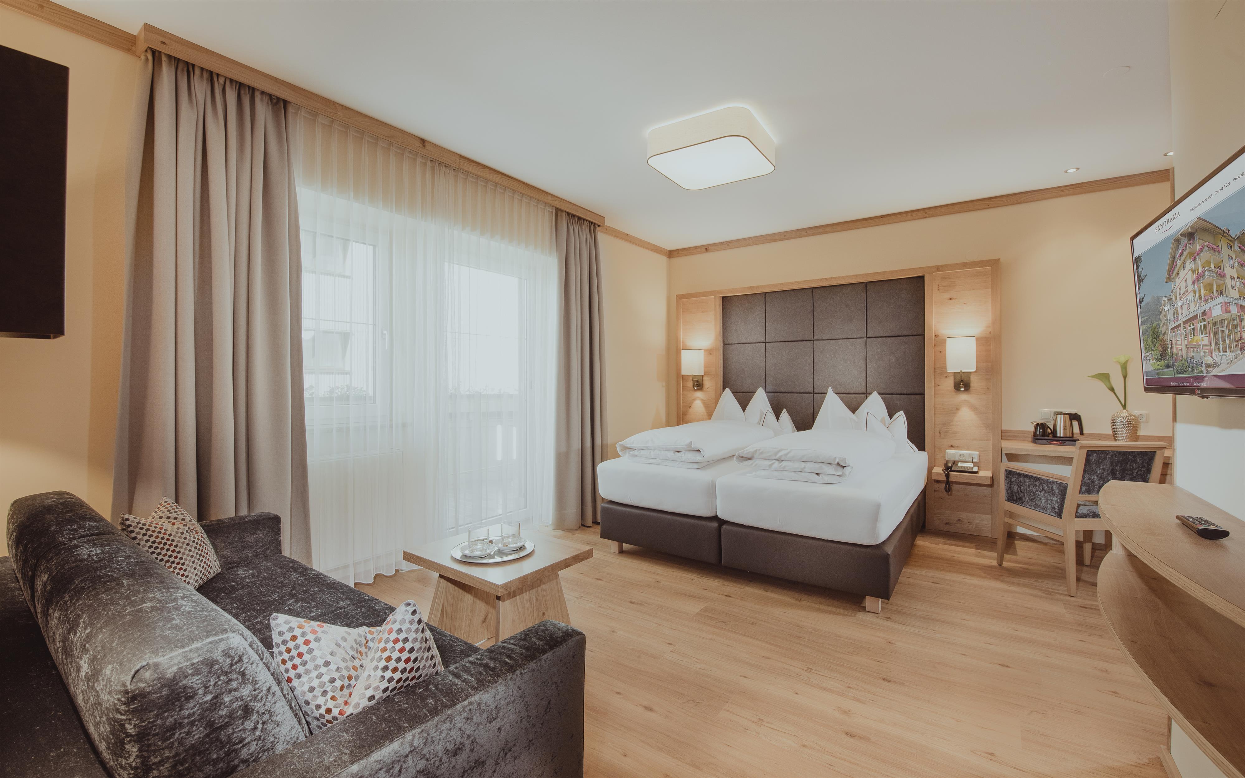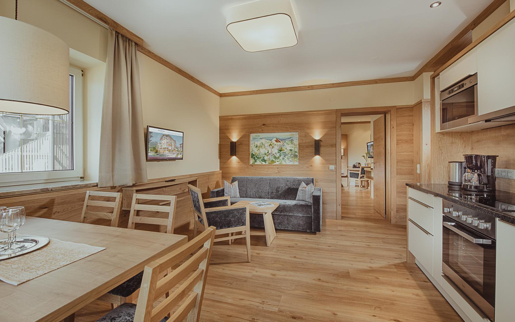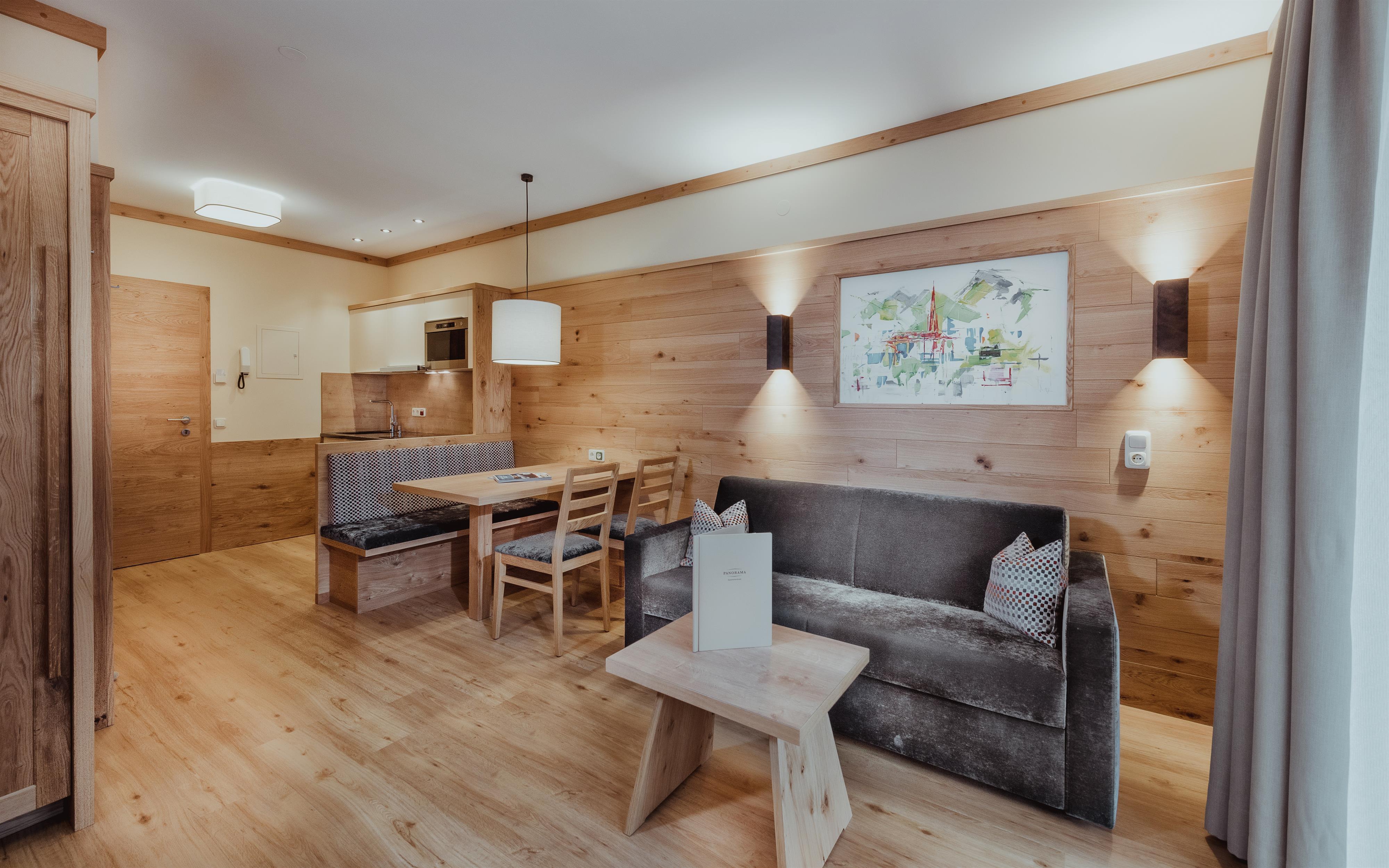 Liebevoll und modern ausgestattet, laden die 27 Wohnungen mit Aufzug im Appartementhotel Panorama nach abwechslungsreichen Tagen in den Bergen von Gastein zum Erholen, Entspannen und Genießen ein. Mit bis zu 65m² Wohnfläche ist bei uns genügend Platz für 2 bis 5 Personen.