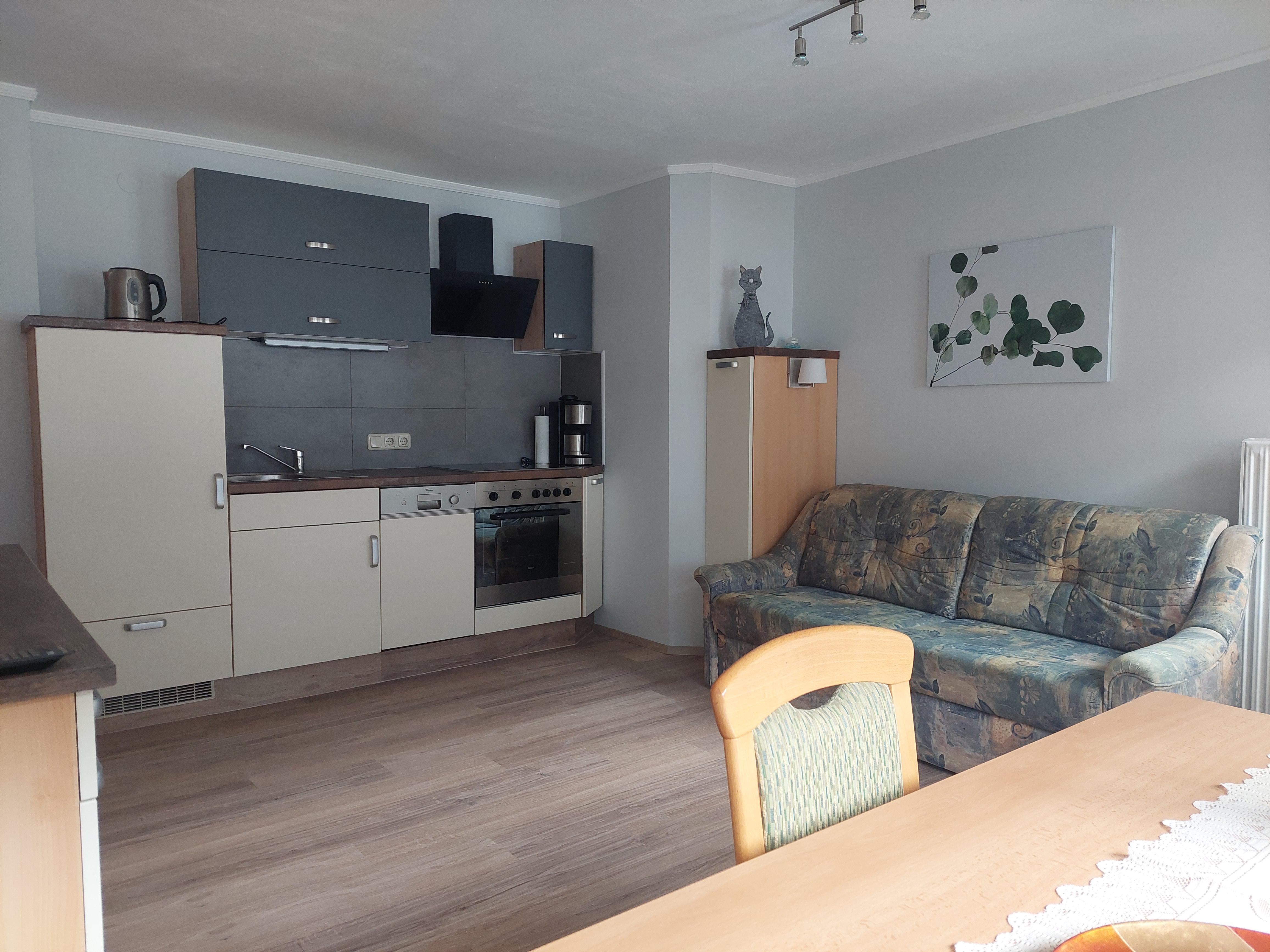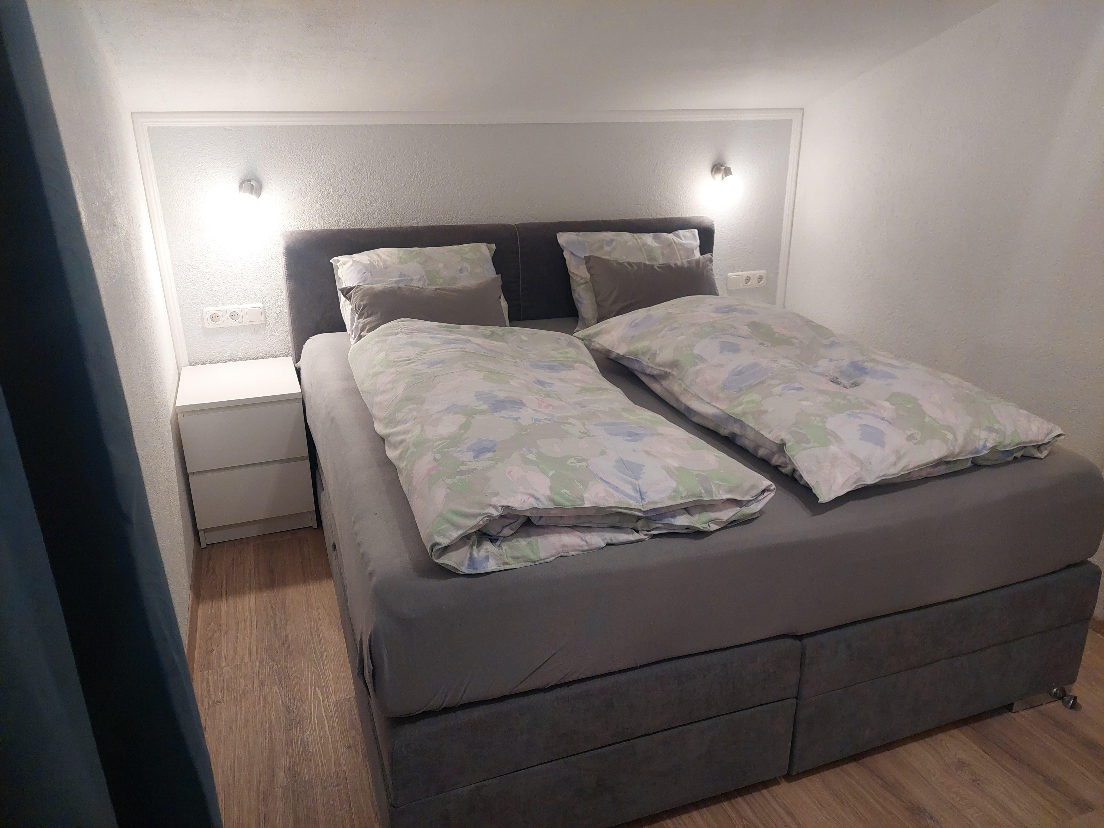 Die Wohnungen verfügt über eine Wohnschlafküche, ein oder zwei Schlafzimmer mit Boxspringbett und einem Badezimmer mit Tageslicht.
