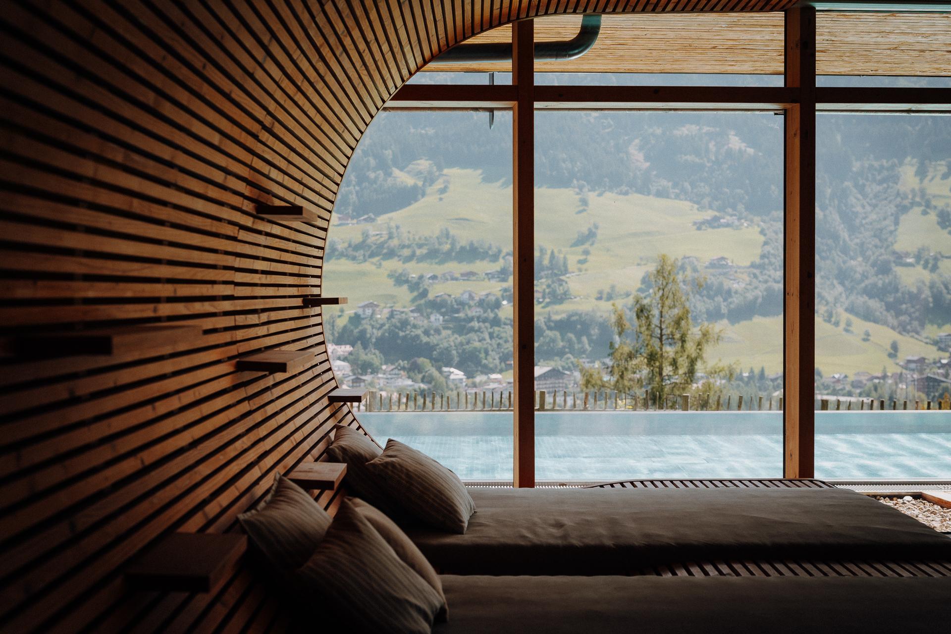 Ein Highlight zu jeder Jahreszeit ist unser freitragender Infinity-Pool (22 m), kombiniert mit Panoramasauna, Goldstollen und exklusiven Spa-Anwendungen.