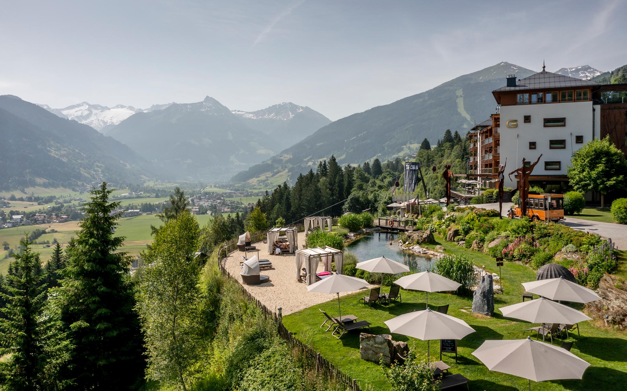 Im Sommer erwartet Sie unser Naturbadesee mit Sandstrand, Beachbar und Daybeds – perfekt für heiße Tage in den Bergen. Für Aktive bietet das Gasteinertal eine große Auswahl an idyllischen Wanderwegen, Golfmöglichkeiten und moderne E-Bikes.