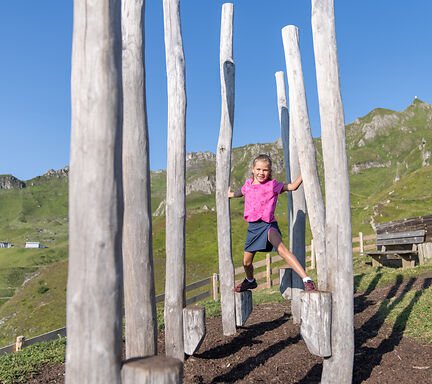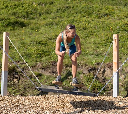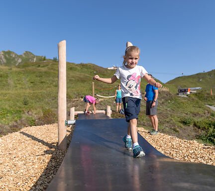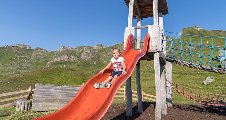 En rymlig utomhuslekplats väntar på dig direkt nedanför bergsstationen Schlossalmbahn - ett riktigt paradis för barn!