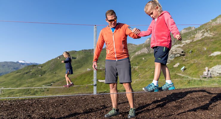 Medan dina små utforskar de olika lekredskapen kan du njuta av det fantastiska bergspanoramat från terrassen på bergsrestaurangen Kleine Scharte. För äventyrare erbjuder slacklineparken spännande utmaningar på olika balanserande rep. Vandra och lek i den friska bergsluften medan hela familjen får valuta för pengarna. Den här upplevelsen gör Schlossalm till ett perfekt resmål för vandring och familjeutflykter.